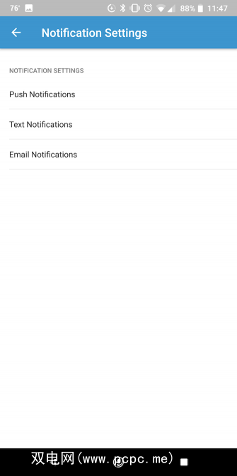 转到设置>通知打开通知。在这里,您会发现三个选项可供选择:推送通知,文本通知和电子邮件通知。如果您想立即更新帐户更改,则“推送"或“文本"可能更方便。