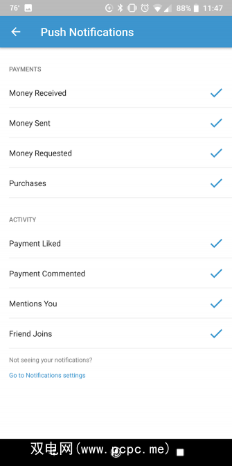 您至少要为已发送款项打开通知,但是打开所有通知并没有什么害处,因此您可以知道自己帐户中的任何活动。