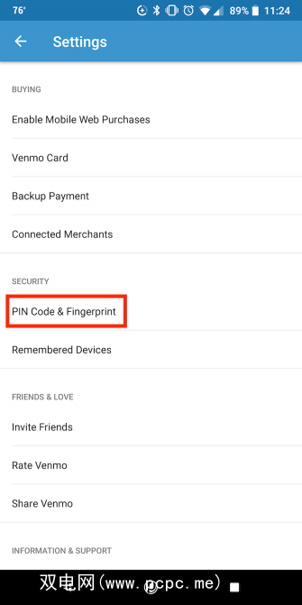 除了2FA,Venmo还需要启用其他一些安全设置。您可以在手机上启用对帐户的PIN码或指纹访问。