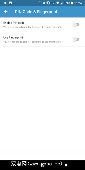 如果电话支持此功能,则可以仅启用PIN码,或者同时启用PIN码和指纹访问。
