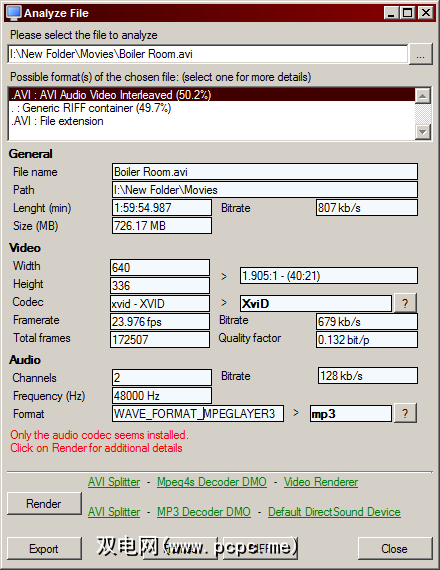 分析文件选项是一个非常有用的选项。如果您遇到麻烦的媒体文件,请通过此方法运行它。除了为您提供有关文件的大量信息(例如大小,长度以及视频和音频详细信息)之外,它还会告诉您是否已安装所有必需的编解码器。