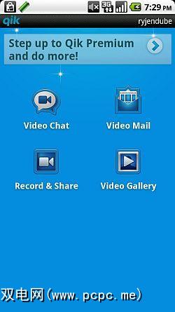 Qik应用程序可让您立即将实时视频流式传输到网络上,但该应用程序还包含一个“视频聊天"选项,当您只想私下流式传输给人们并与他们聊天时,可以使用该选项。