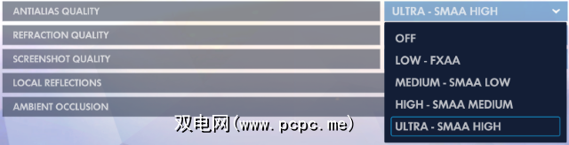 所有质量设置都以类似的方式工作,因此我们不再逐一介绍它们。这包括着色器质量,可调整游戏中明暗平衡的程度。