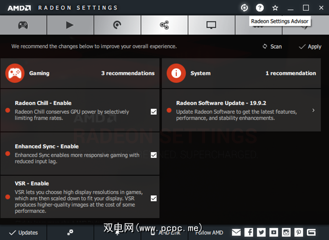 在AMD Radeon软件中,您会发现三个AMD Radeon Advisor工具。 。您可以在任何游戏中运行Game Advisor,以获得更好的性能建议。 Settings Advisor会扫描您的系统并根据您的设置提供建议。最后,升级顾问将帮助您确定是否可以玩特定的游戏。