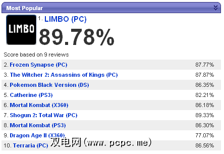 MetaCritic是电影中最受欢迎的评论聚合器之一,但它们在视频游戏中丝毫不逊色部门。它们与GameRankings相似之处在于,它们从各个站点获取评论分数并将其平均。它们的布局大不相同。他们比GameRankings更注重美观。