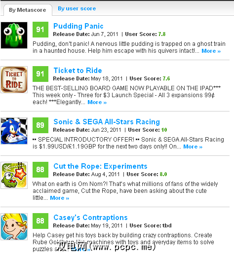 我真正喜欢MetaCritic的地方在于,他们将iPhone作为游戏平台的接受程度超过了其他网站。它们具有汇总的一整套iPhone评论。尽管iPhone游戏价格便宜,并且不是主机游戏的主要购买决定,但仍然可以从多个角度了解值得关注的内容和不值得了解的内容。