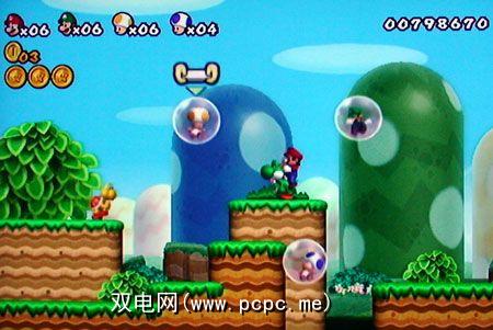 从机械上讲,该游戏非常适合成人和儿童一起玩。任天堂实施了一种系统,其中游戏中的死亡导致角色漂浮在泡沫中。这样,如果孩子在努力跳下去或完成一段路时,他们可以漂浮在他们的小泡泡中,而成人则继续前进。这样一来,孩子们就可以参与到游戏中,而不必让父母退缩。