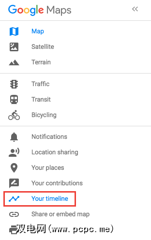 您也可以通过登录Google Maps到达时间轴,单击菜单按钮>您的时间轴。