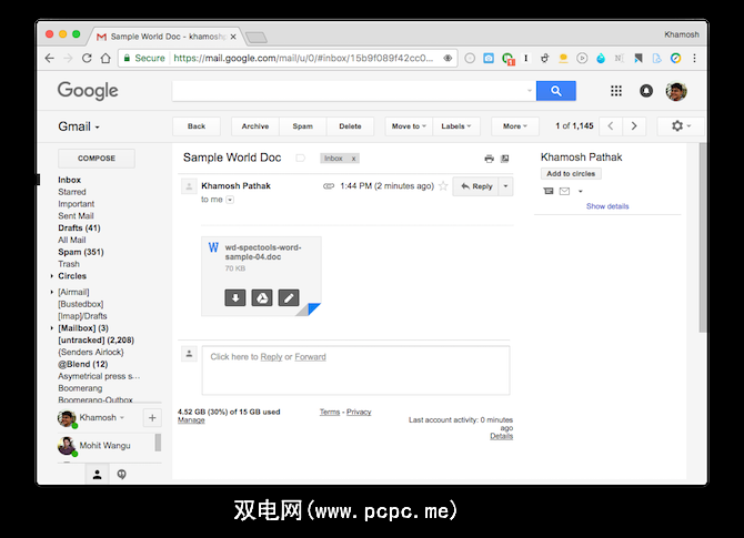 如果您在Chrome中使用Gmail的网络视图,则不需要第三方扩展程序即可预览Office文档。