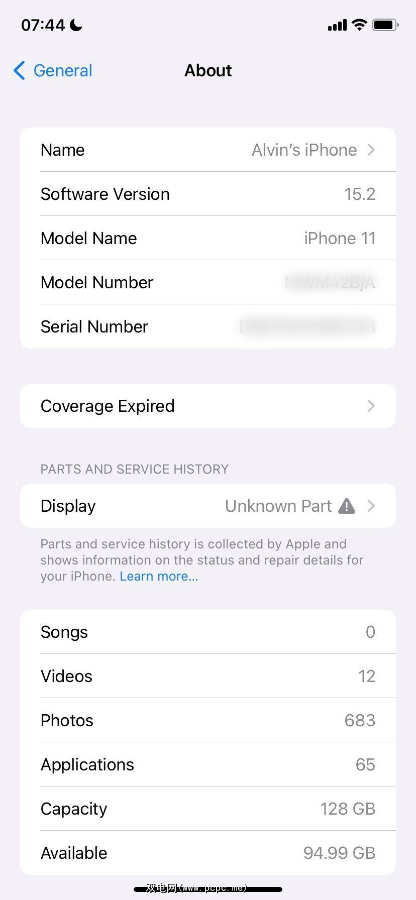 最后,零件和服务历史记录与您 iPhone 的序列号相关联。虽然这很好,但限制是如果您的 iPhone 序列号在维修期间发生更改,您将只能看到与新编号相关的部件和历史服务。