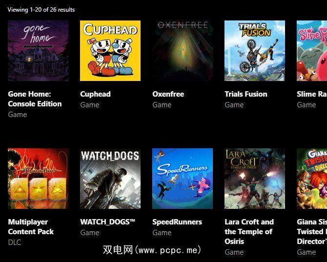 默认情况下,将显示您所有的Xbox One游戏。展开左侧的 Available on (可用),以显示 PC 和 Xbox 360 游戏。您还可以展开部门标头以显示游戏, DLC 和捆绑包类别。如果您只想查看为游戏购买的DLC,这将很方便。