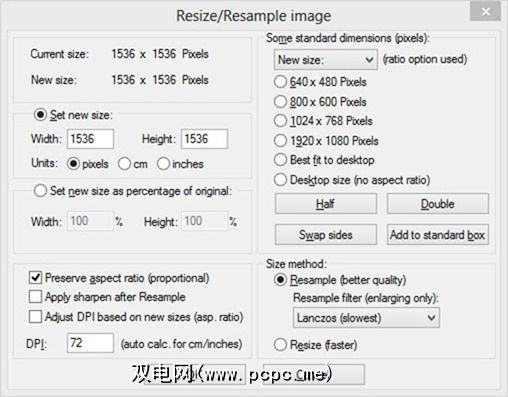 这种简单性并不意味着IrfanView缺乏原始功能:例如,使用“调整大小"对话框:
