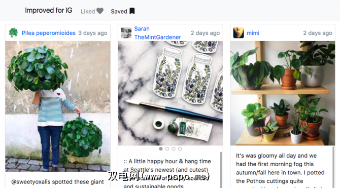 这将打开另一个窗口,您可以在其中查看已保存和喜欢的Instagram照片的供稿。点击这些图像将打开指向该照片的Instagram链接。
