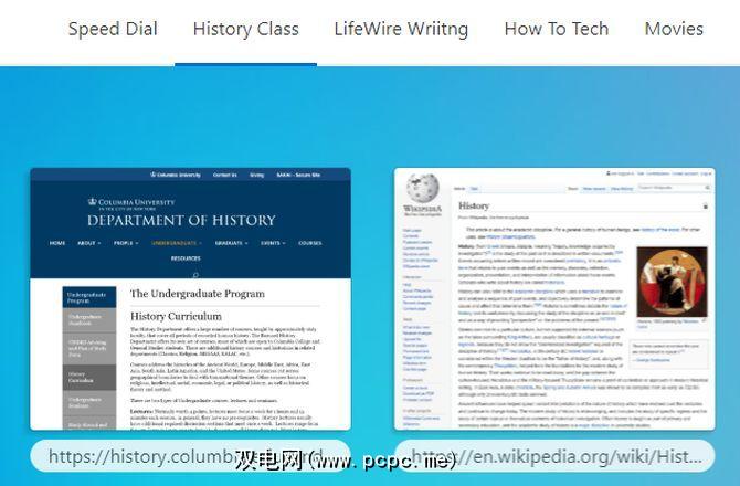 使用此功能,您可以将与类似任务相关的选项卡进行堆栈。这样,您可以在一个较小的空间中同时进行许多活动。