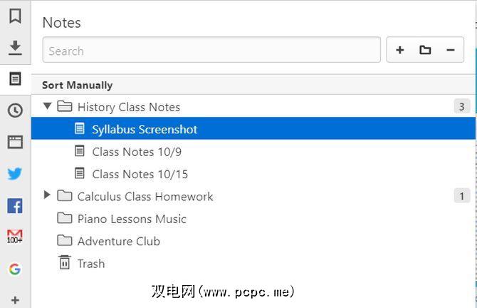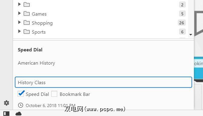 使Vivaldi独树一帜的原因是在此面板中,您可以快速创建新文件夹来组织信息。例如,创建一个“历史课程"文件夹,以保留您所有的课程信息,研究材料以及与该课程有关的所有其他信息。