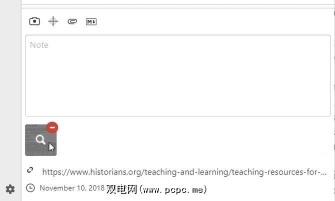 “注释"区域集成了此功能。只需点击相机图标或十字线图标即可进行截图。您可以将它们附加到便笺上。