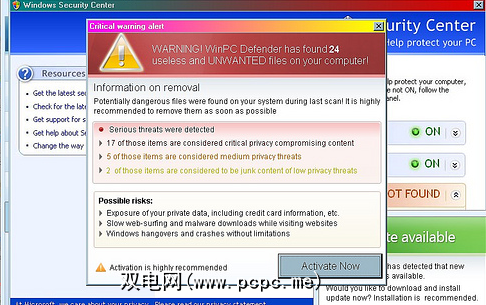 Scareware通常采用弹出式程序的形式,告诉您计算机感染了某种恶意软件。当您单击以删除(通常)多个恶意软件实例时,您必须付费购买完整版,然后程序才能清理系统并消除其感染或威胁。