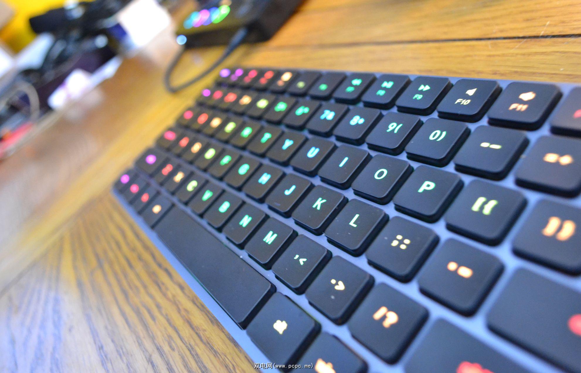 在每个按键下,您会发现一个 RGB 灯,LP85 支持 19 种不同的 RGB 灯效配置,例如彩虹漩涡、随机图案等等。值得庆幸的是,还可以选择切换到单一 RGB 颜色模式(其中有额外的八种模式),但考虑到所有因素,LP85 的 RGB 照明与您看到的一些更华丽的选项相比相当不错。