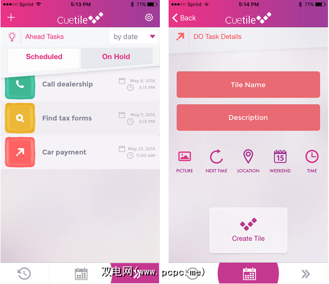 Cuetile是另一个类似于To Round的方便任务列表应用程序。仅适用于iOS,它将待办事项以颜色编码的图块显示在主屏幕上。如果将来要交任务,它将被保留在不同的部分,直到完成任务为止。这样可以使主屏幕保持干净,并显示当前到期的待办事项。