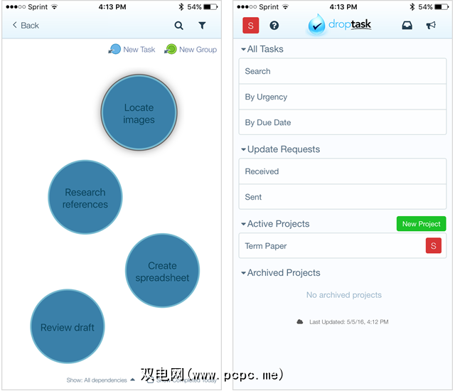 对于那些喜欢将视觉体验与有组织的列表混合使用的人,DropTask提供了两者的组合。在iOS,Android和网络上都可用,组织项目任务和组很容易。当您点击项目中的“视觉视图"选项卡时,您会看到以彩色编码的圆圈很好地显示您的任务,可以在屏幕上重新排列。您还可以创建组并在该组中移动某些任务,这非常适合组织。