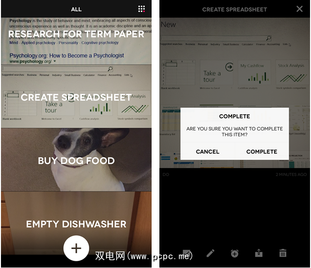 所有待办事项及其照片都显示在主屏幕上。这样一目了然,您可以一眼就能看到盘子上的东西。选择一个进行编辑,添加带有重复选项的提醒,共享,删除或将其标记为完成。