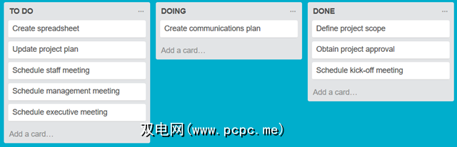 原理是在软木或白板上使用分割的部分来执行待办事项,做事和为了提供坚实而有条理的视觉工作流程而完成。这三个部分构成了基本结构,但当然可以根据需要添加更多内容。