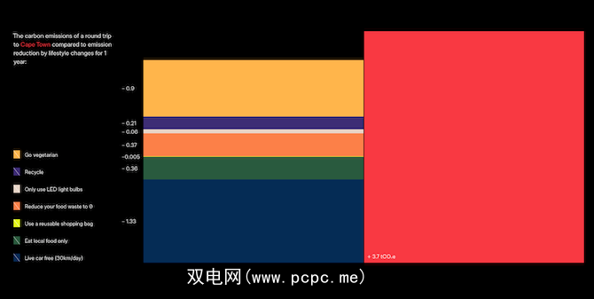 因此,从纽约到洛杉矶的往返旅行将导致北极冰面损失12.3公尺。最重要的是,您可以了解为了补偿航班的碳排放而必须实施的生活方式改变的次数。