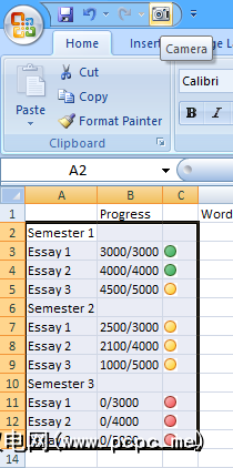 使用“摄像头"工具拍摄带有交通信号灯和温度计的进度图的快照,并将其转移到工作表中您将其命名为``仪表板''。现在只不过是一种以您喜欢的方式排列和格式化内容以及添加您可能需要的其他元素的情况。我只是在“数据"表上创建待办事项列表,然后使用相机在其上进行转移即可。