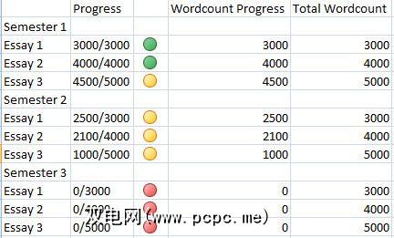 现在您将使用条件格式进行更改这些百分比变成清晰的图标。选择所有C列,然后在“首页"功能区的“样式"部分中单击“条件格式"。然后从下拉菜单中选择“图标集",然后选择三层彩色图标集之一。数据栏和色阶也可以使用,但是这完全取决于您要显示的信息类型。在这里,重要的细节是每篇论文是完成,进行中还是尚未开始,因此“流量轻"格式效果很好。