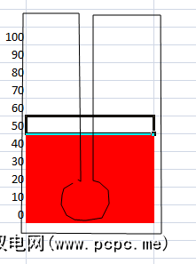 下一步,停止这些值本身在这些单元格中的显示。从I3到I13突出显示,右键单击并选择“设置单元格格式"。从列表中选择“自定义",然后在“类型"字段中输入不带引号的“ ;;;"。按OK,您的数字值应该消失了,只剩下温度计的红色。从“插入"功能区中选择“形状"工具,然后从“线"子组中选择“自由形式"实体形状。使用此工具绘制温度计的轮廓以包含红色的条形。