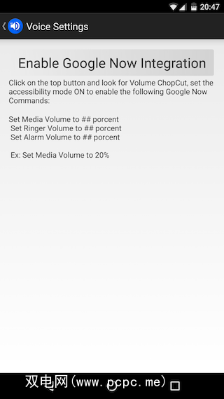 对于语音控件,您可以将ChopCUT集成到Google即时中。点按屏幕右上方的麦克风图标,然后点击启用Google即时集成。在为应用程序打开辅助功能模式后,您将可以通过语音命令控制音量。