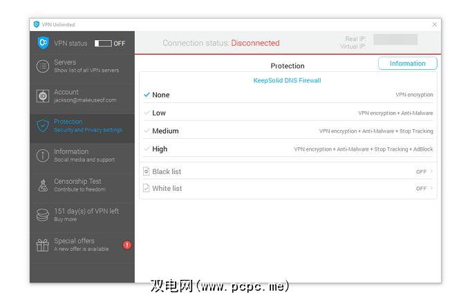另一方面,高保护功能可以为您提供VPN加密,反恶意软件保护,跟踪保护和广告拦截器。 KeepSolid会维护自己的黑白名单,但是您可以创建自己的黑名单以实现自定义性能,因此您喜欢阅读的网站可以向您显示广告。