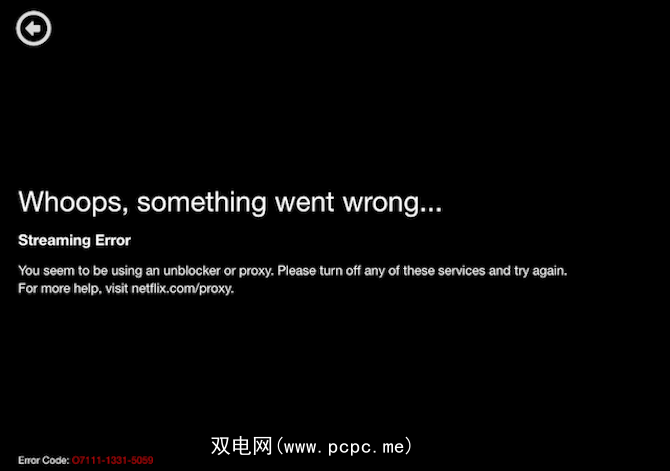 到目前为止,如果您尝试通过VPN访问Netflix,您的努力将立即受挫。您会看到以下错误消息: