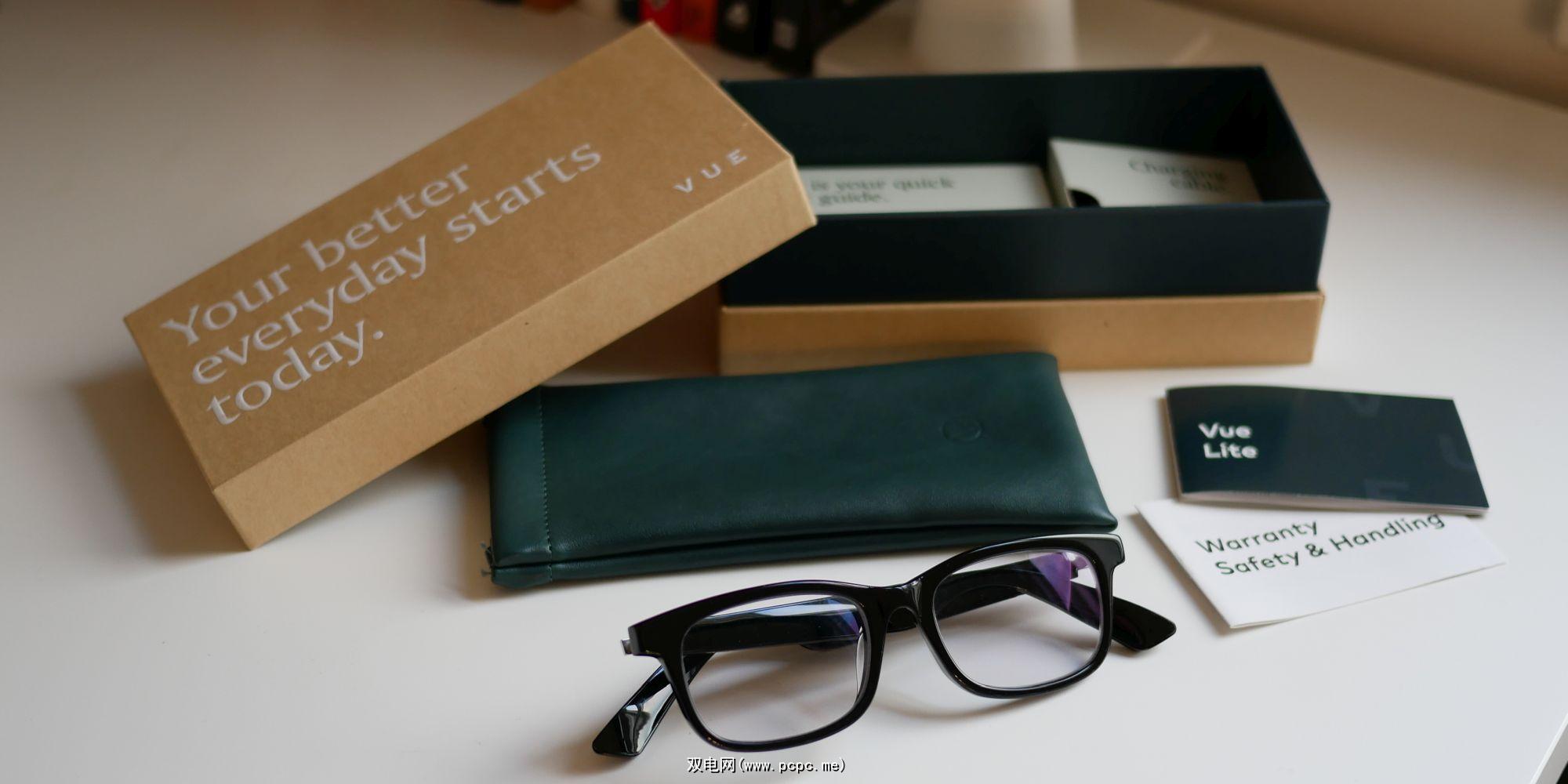 Vue Lite 2 装在一个时尚的纸板箱中,里面装有眼镜和以下物品: