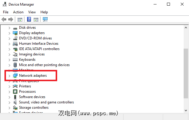 向下滚动设备列表,直到找到网络适配器。单击>展开菜单。