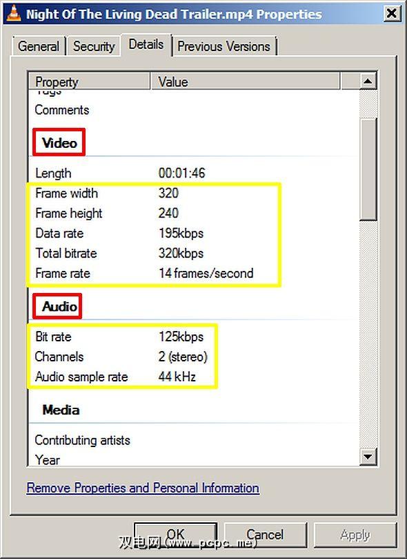 在开始使用之前,请快速记录一下视频文件的一些属性:右键单击视频文件,然后选择P 属性从上下文菜单中。然后选择详细信息标签。在视频子标题下写下以下详细信息: