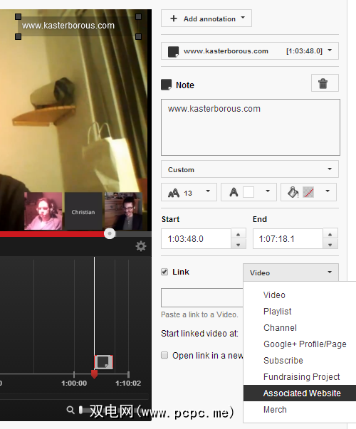 您可能需要先暂停视频,然后再继续。点击添加注释,选择您要使用的类型(从“气泡",“注释",“标题",“聚光灯"和“标签"中选择),插入要显示的文本,并使用文本编辑工具确定注释的方式出现。根据需要,使用鼠标在屏幕上拖动注释。您还应该注意开始和结束字段,这些字段控制注释何时出现在视频中以及持续多长时间。