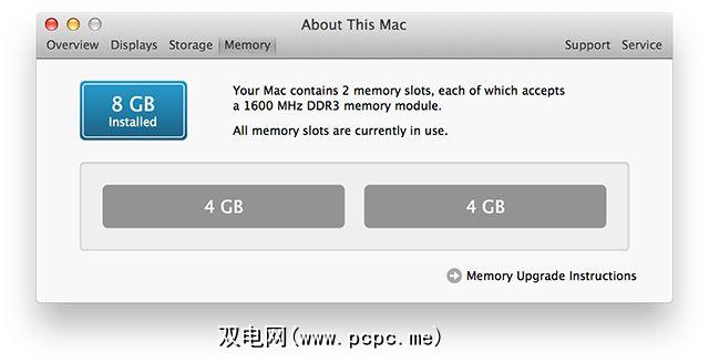 确定您所需要的RAM的最简单方法是我们今天将不涉及的复杂操作(根据iFixit标准,这两者都被认为是“困难的")。>需要的是单击屏幕左上角的Apple,选择关于本机,然后单击更多信息。最后,单击“内存" 选项卡。