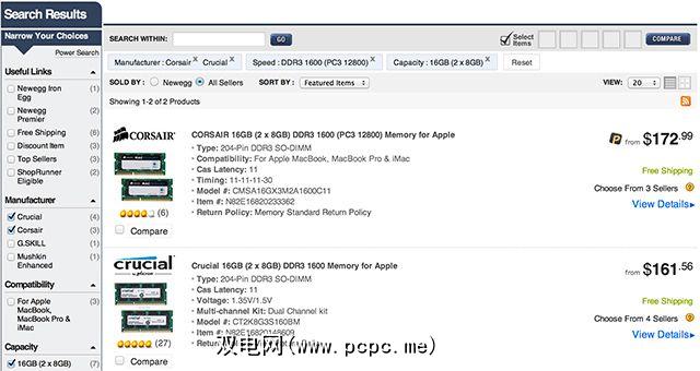 您也可以直接从Apple获得RAM,但这会花费很多钱金钱– Apple的16GB售价$ 400!另一方面,通过NewEgg从Crucial获得16GB的RAM只需花费162美元。在eBay等网站上也可以获取Mac的二手RAM,但是您不能完全保证所购买的产品没有问题。
