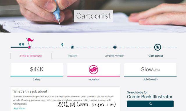 按行业浏览该网站,然后进入每个行业的职业道路。例如,漫画家的职业道路看起来像这样: