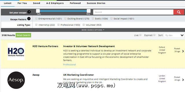 这种独特的职业资源延续了做“不同"事情的精神。使用该网站查找公司主流之外的工作。如果您想逃离小隔间,这可能是一种尝试的资源。从成为大象保护者到成为2023年第一次火星一号任务的宇航员,这些镐的种类繁多,不适合胆小的人。幸运的是,您可以使用滑块缩小在安全或野外之间的工作范围。