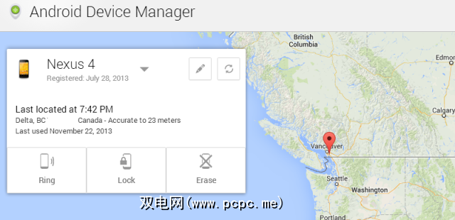 丢失设备后,可以访问Android设备管理器网站在地图上找到它,