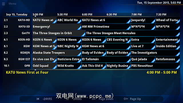 在Kodi主屏幕的“直播电视"部分,您现在可以访问电视频道,录制内容,甚至可以设置DVR录制某些内容。而且您不必将其限制为仅一台计算机:网络上的任何计算机都可以访问NextPVR,这意味着如果您重复上述步骤(将运行NextPVR的计算机的IP添加为主机名)。
