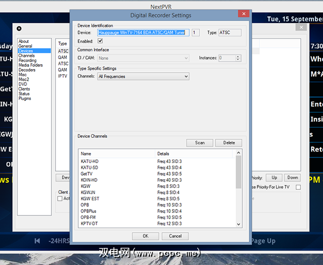 假设您已正确安装电视调谐器,则应该在设备下看到它>。在这种情况下,请选择它并单击设备设置。在这里您可以扫描电视频道。