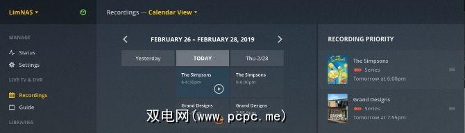 从此处您可以查看要录制的内容,播放录制内容,甚至设置优先级如果您有很多录音会重叠。这样可以确保当您的调谐器没有足够的流时,您最喜欢的节目优先于其他节目。