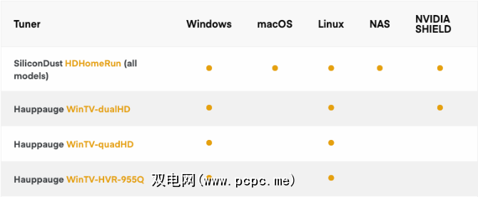 Plex支持页面提供了支持的天线列表以及操作系统兼容性。列表顶部的一个是HD HomeRun Connect Duo。它受所有操作系统的支持,并且是唯一可以连接到网络附加存储(NAS)的系统。