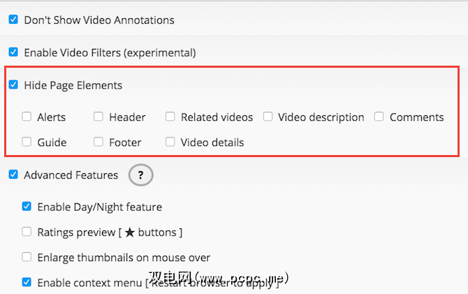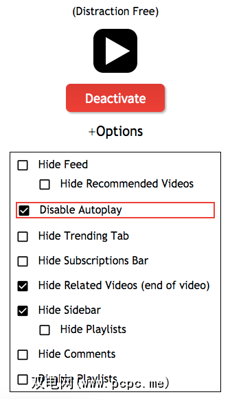 使用DF YouTube,Chrome用户可以禁用自动播放,隐藏趋势标签,推荐视频,订阅,视频末尾的相关视频,评论等。<