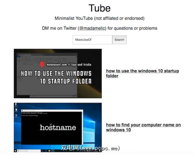 它并没有比极简主义YouTube更吸引人的注意力。该网站只不过是一个搜索栏,结果页面也是如此。您会看到与搜索相关的视频,当您单击视频时,它将占据整个页面的大部分时间。