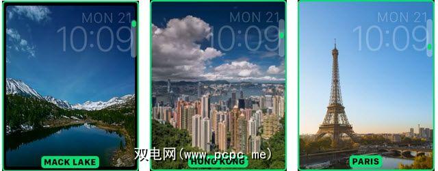 最后,我们有一些漂亮的新表盘可供选择苹果公司并没有因此感到失望。首先,您可以从世界各地的六种风景优美的景观中选择一种,以延时模式显示。因此,例如,如果您选择巴黎或上海,您将看到场景变暗,然后又变亮。要选择一个,只需单击“为此表盘脸部类别自定义",然后在您喜欢的表盘脸部选项间滚动。