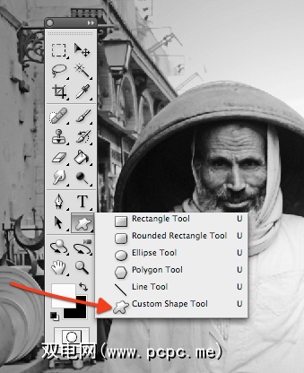 接下来,使用形状工具,选择自定义形状。